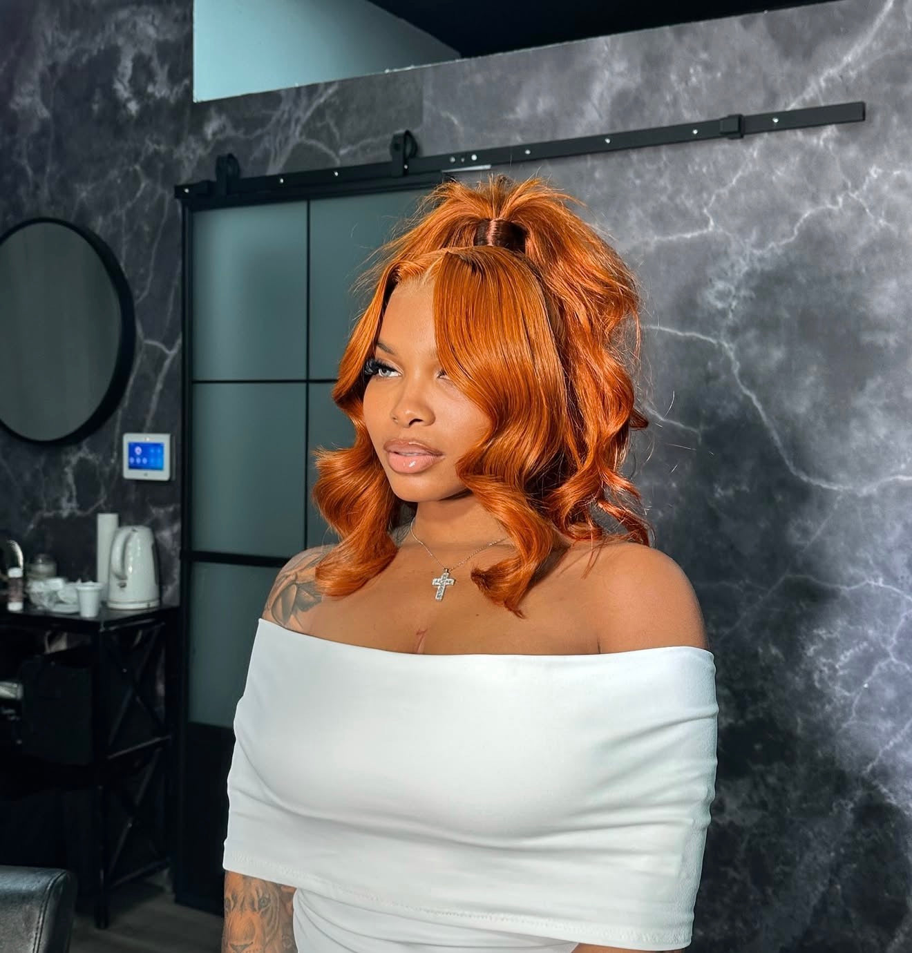 Turn heads effortlessly with our Ginger Spice Unit — a rich, warm tone that radiates confidence and glow. Crafted with 250% density for unmatched fullness and movement, this unit delivers that soft, high-end volume you’ll fall in love with. The 13x4 transparent lace melts seamlessly into your skin for a flawless, natural look — perfect for both everyday wear and statement glam.